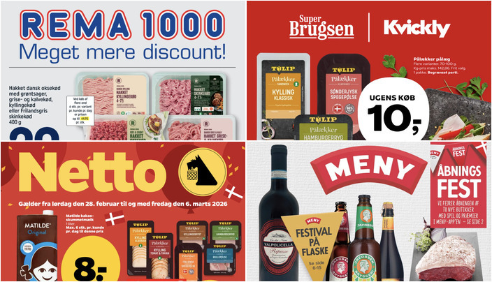 SuperBrugsen tilbyder Tulip Pålæg i flere varianter til en pris af 10 kr. pr. pakke. Bemærk, at der er tale om et begrænset parti. Tilbuddet gælder fra fredag 27. februar til torsdag 5. marts.
